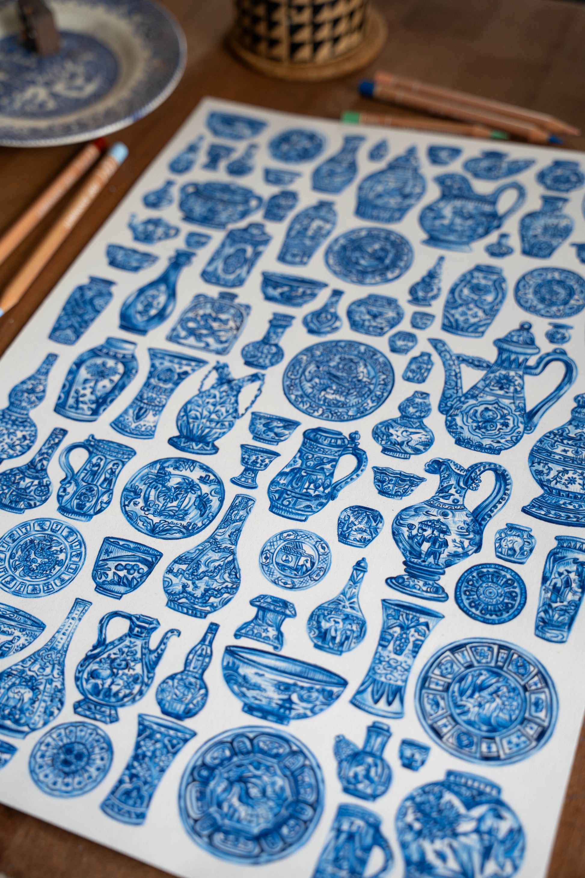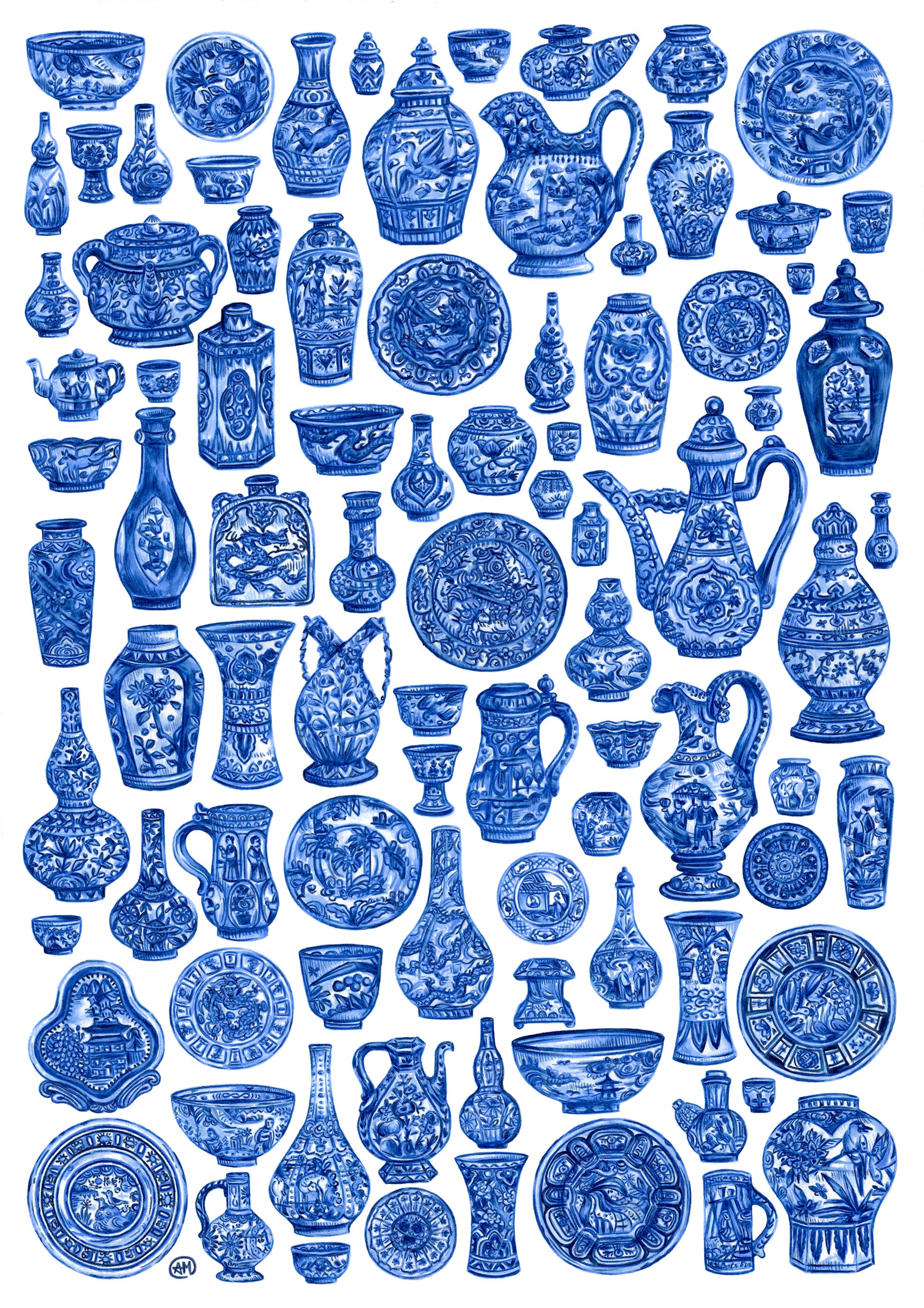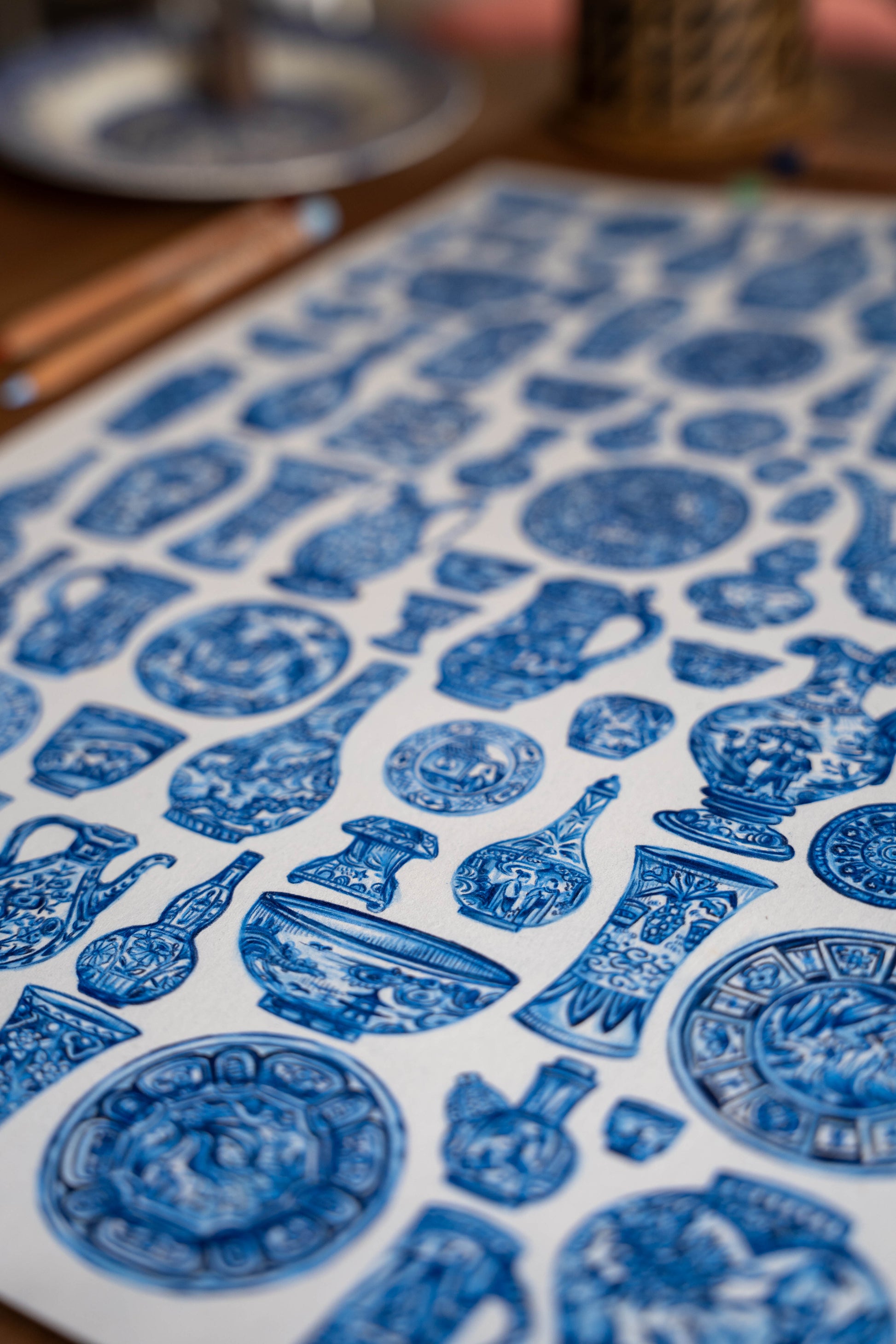 Asian Blue is the definitive original work from a collection two years in the making . This illustration is an original A3 coloured pencil drawing celebrating the timeless craftsmanship and heritage of asian ceramics - predominantly Chinese designs.